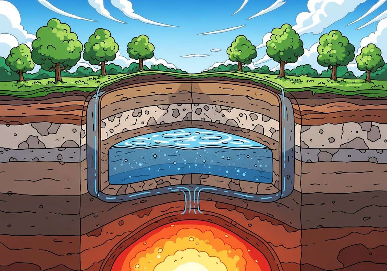 An underground layer of permeable rock, sediment, or soil that holds and transmits groundwater.