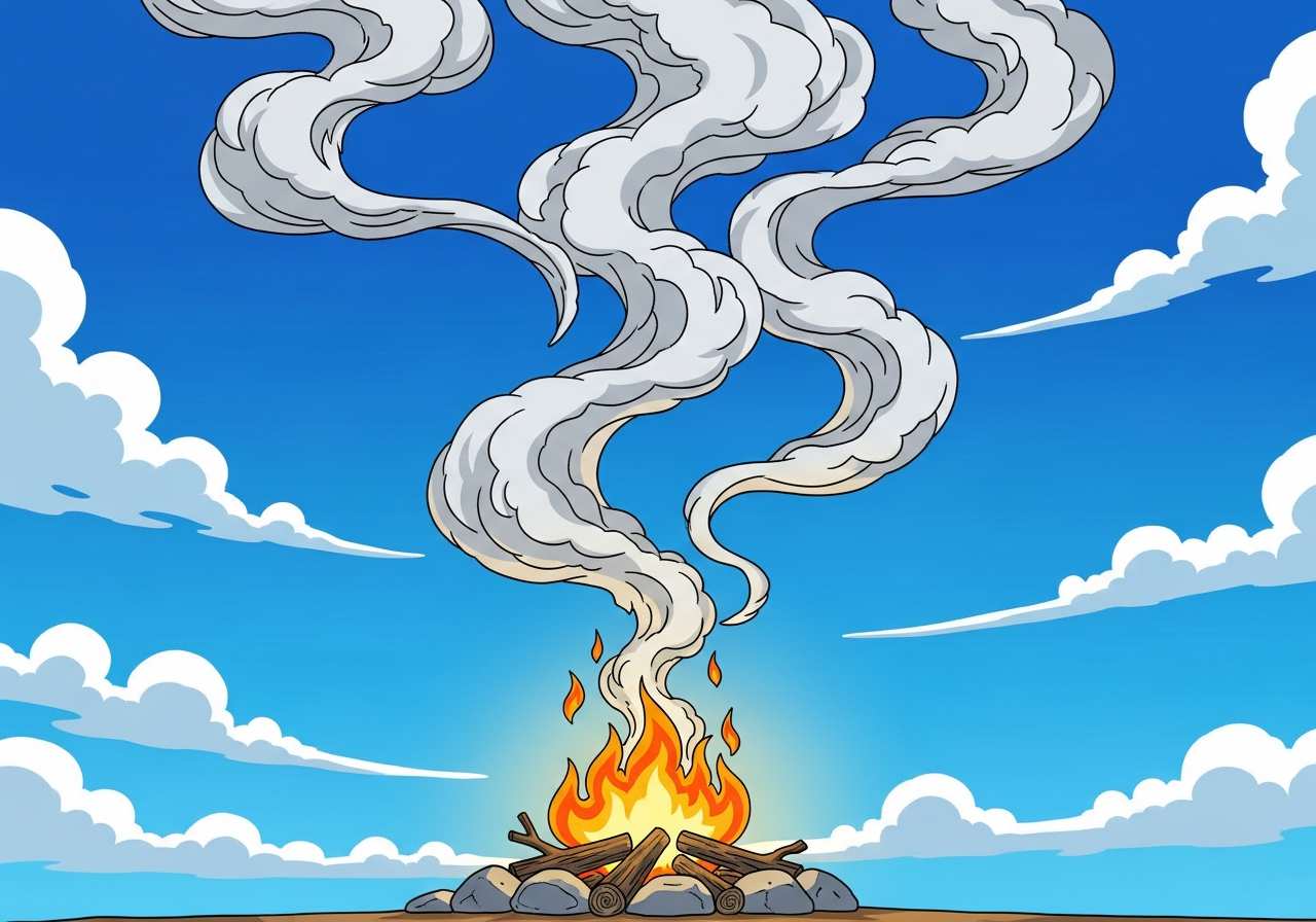 Smoke arose from the chimney into the cold morning air.