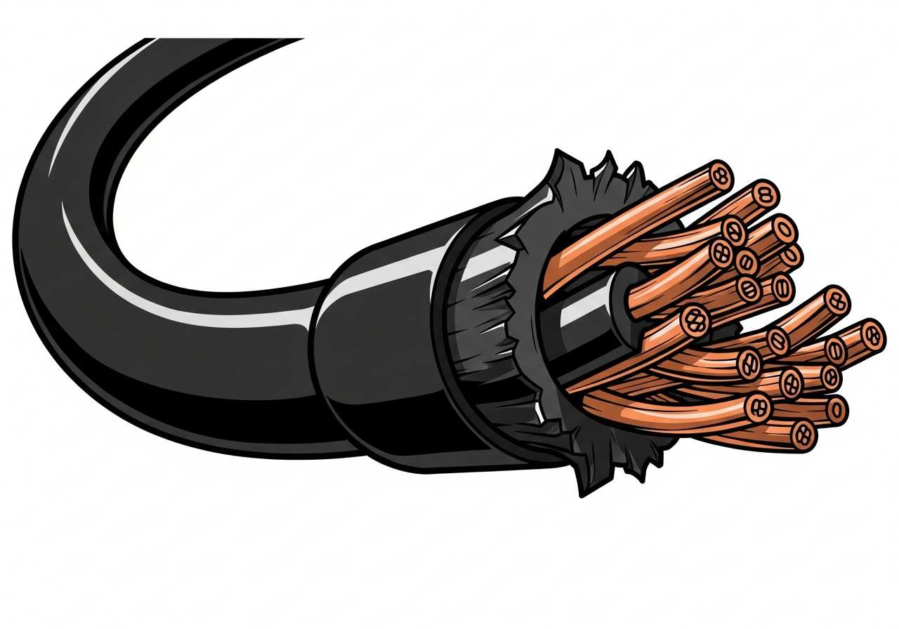 An insulated wire or bundle of wires used for transmitting electricity or telecommunications signals.