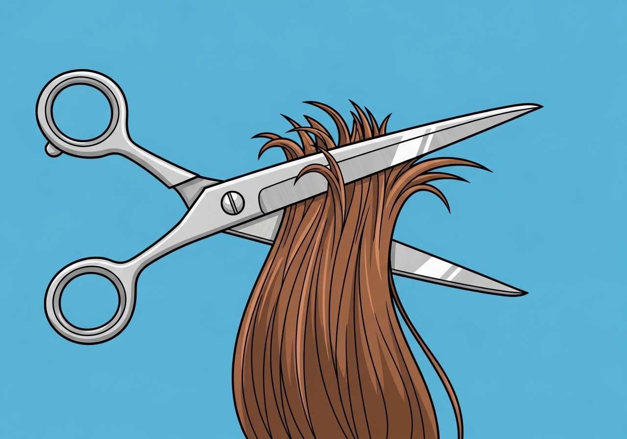 To cut something with scissors or shears, especially to trim or shorten.