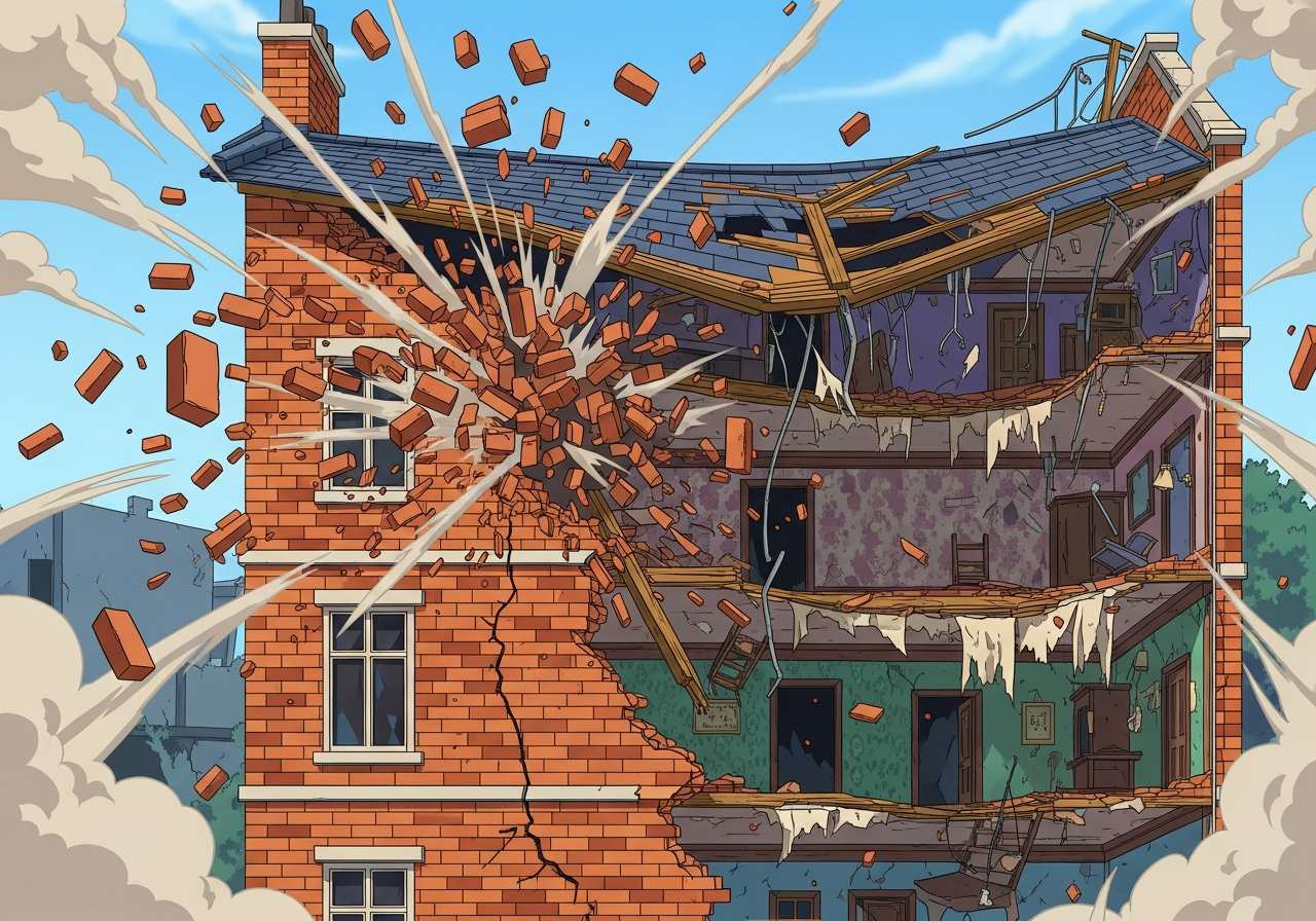 An instance of a structure falling down or caving in.