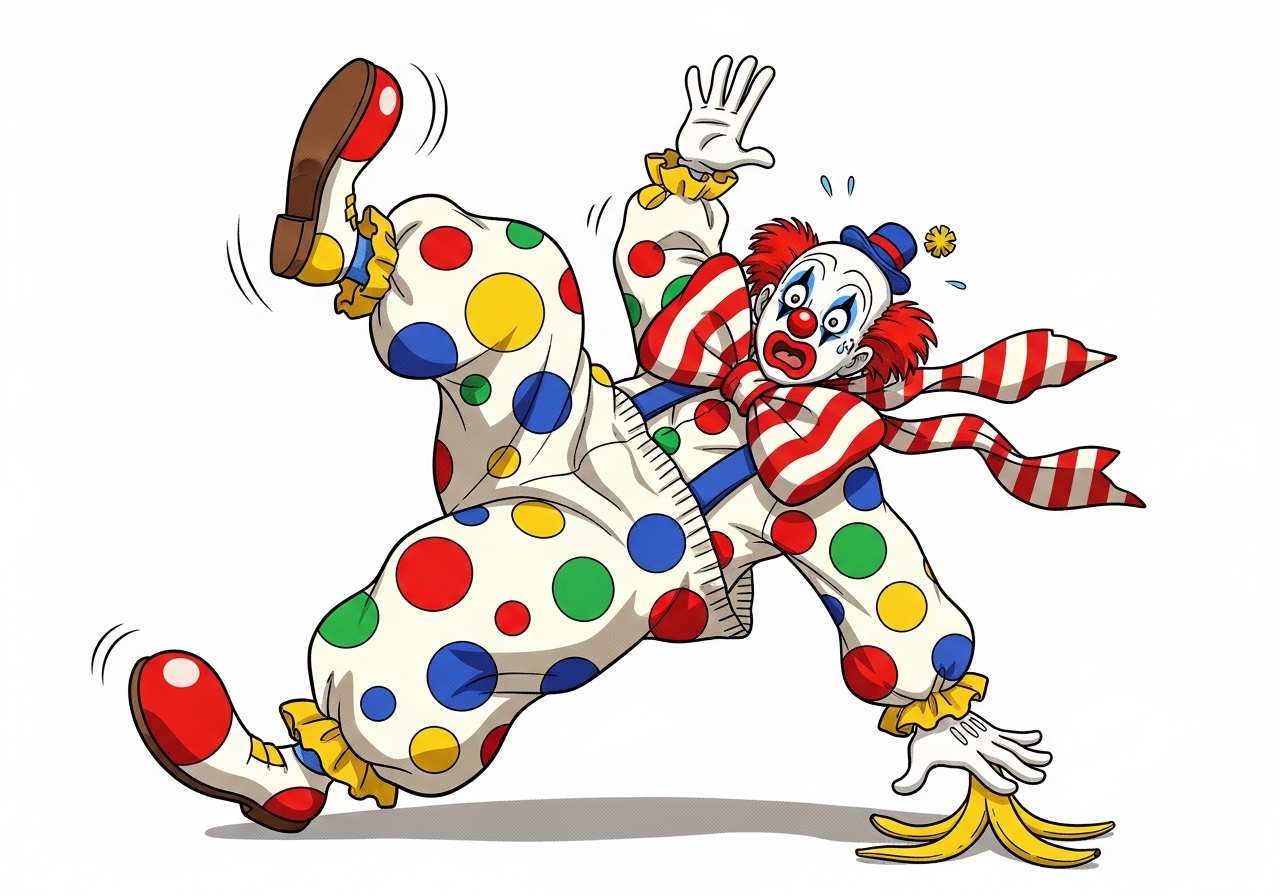 The clown's comical expressions made everyone laugh.