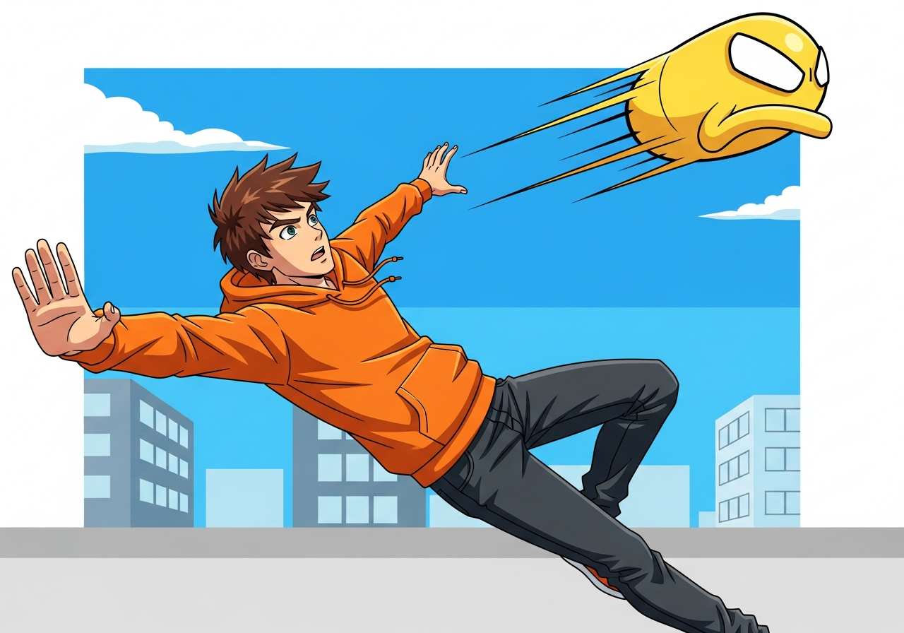 With a quick dodge, she avoided the ball.