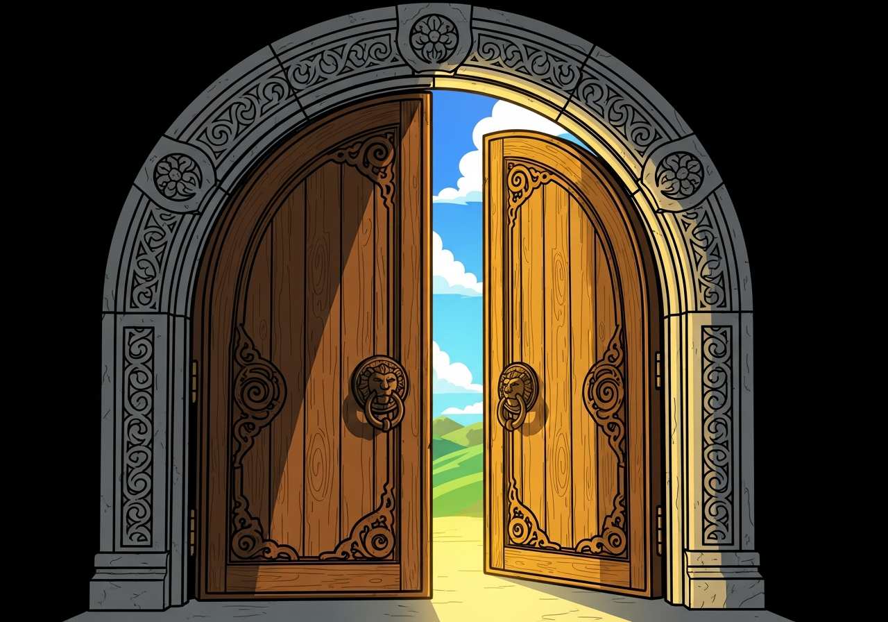 A door, gate, or other opening that allows access to a place