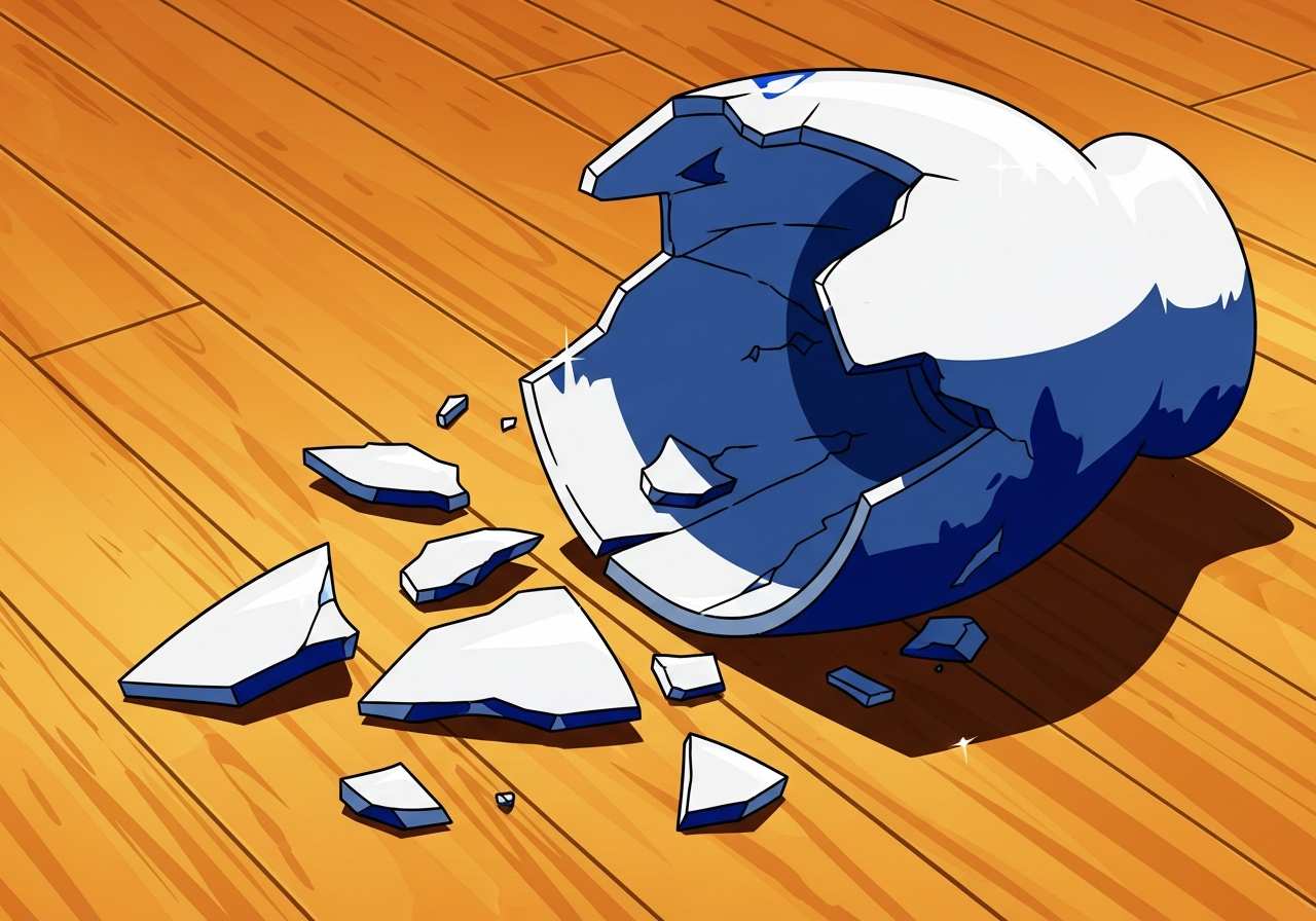 The glass fragmented into tiny pieces when it hit the floor.
