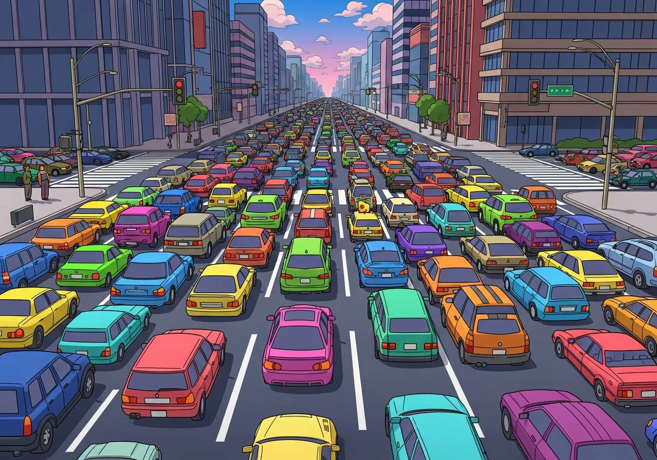 A situation in which traffic in a city becomes so congested that vehicles cannot move at all, especially at intersections.