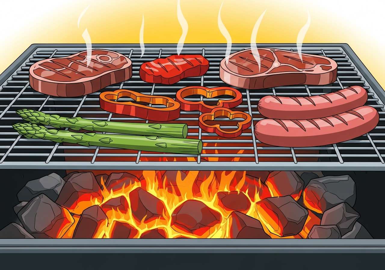 A metal framework or appliance with parallel or crossed bars used for cooking food over direct heat