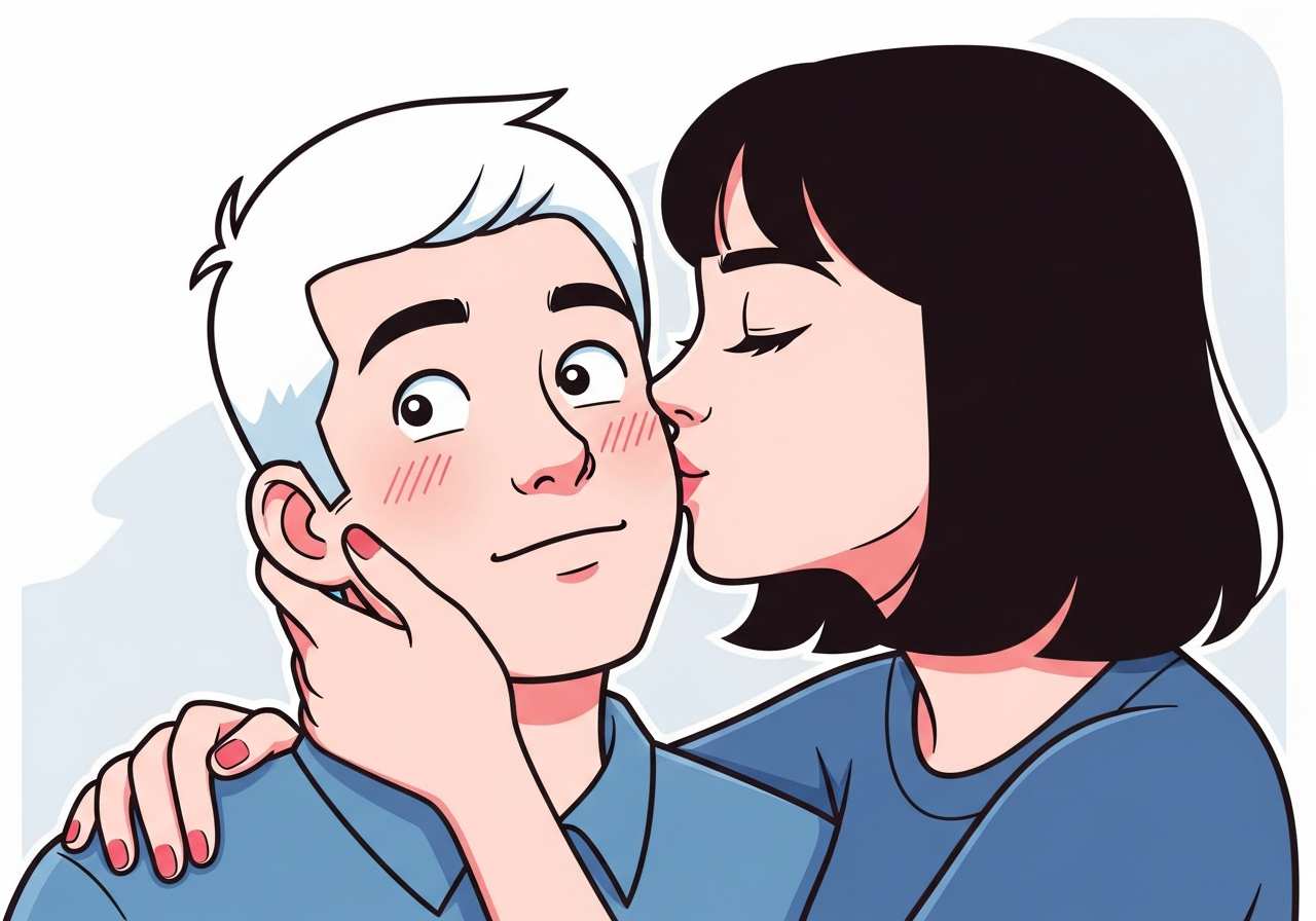 A touch or caress with the lips as a sign of love, affection, greeting, or reverence.