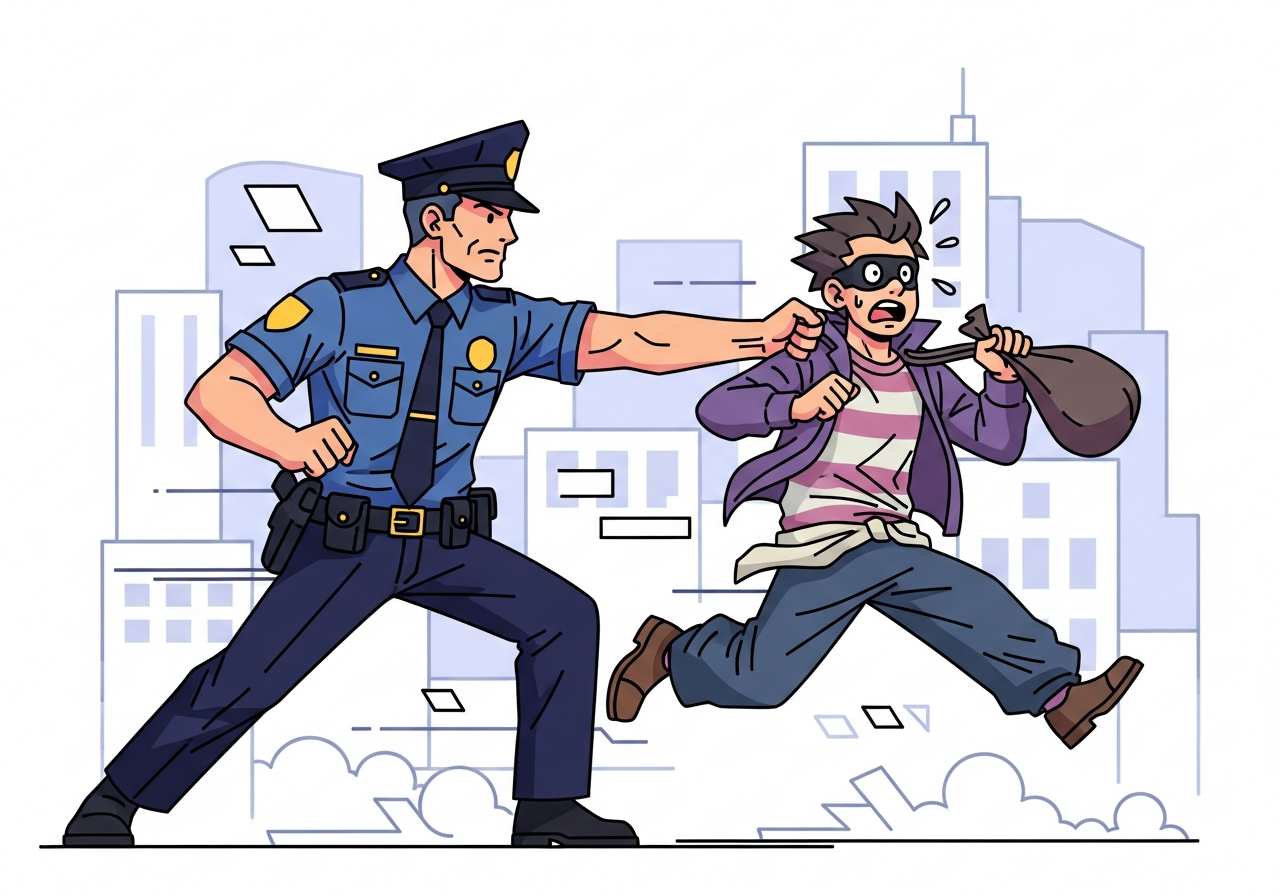 The police nabbed the thief as he tried to escape.