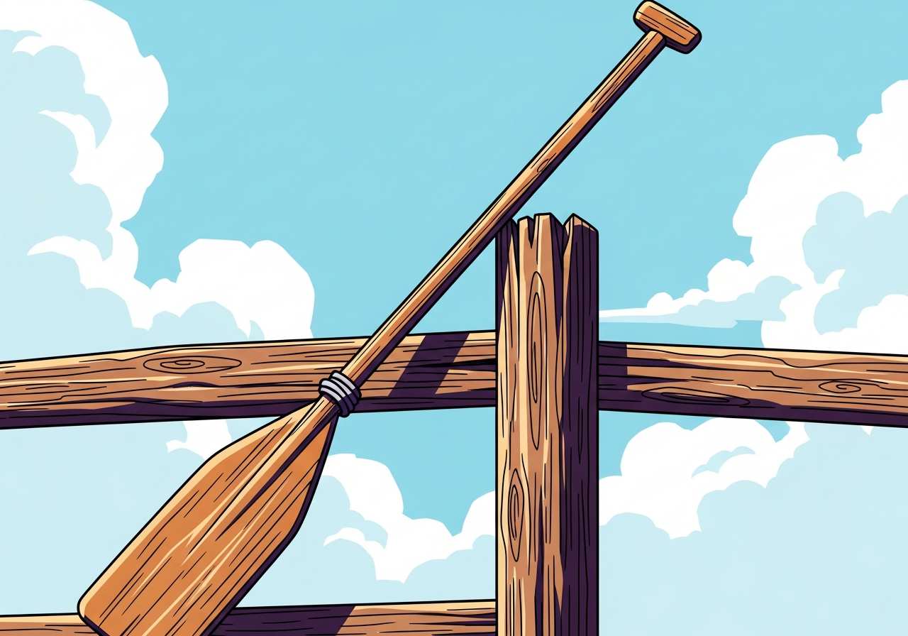 A long pole with a flat blade at one end, used for rowing or steering a boat through water.
