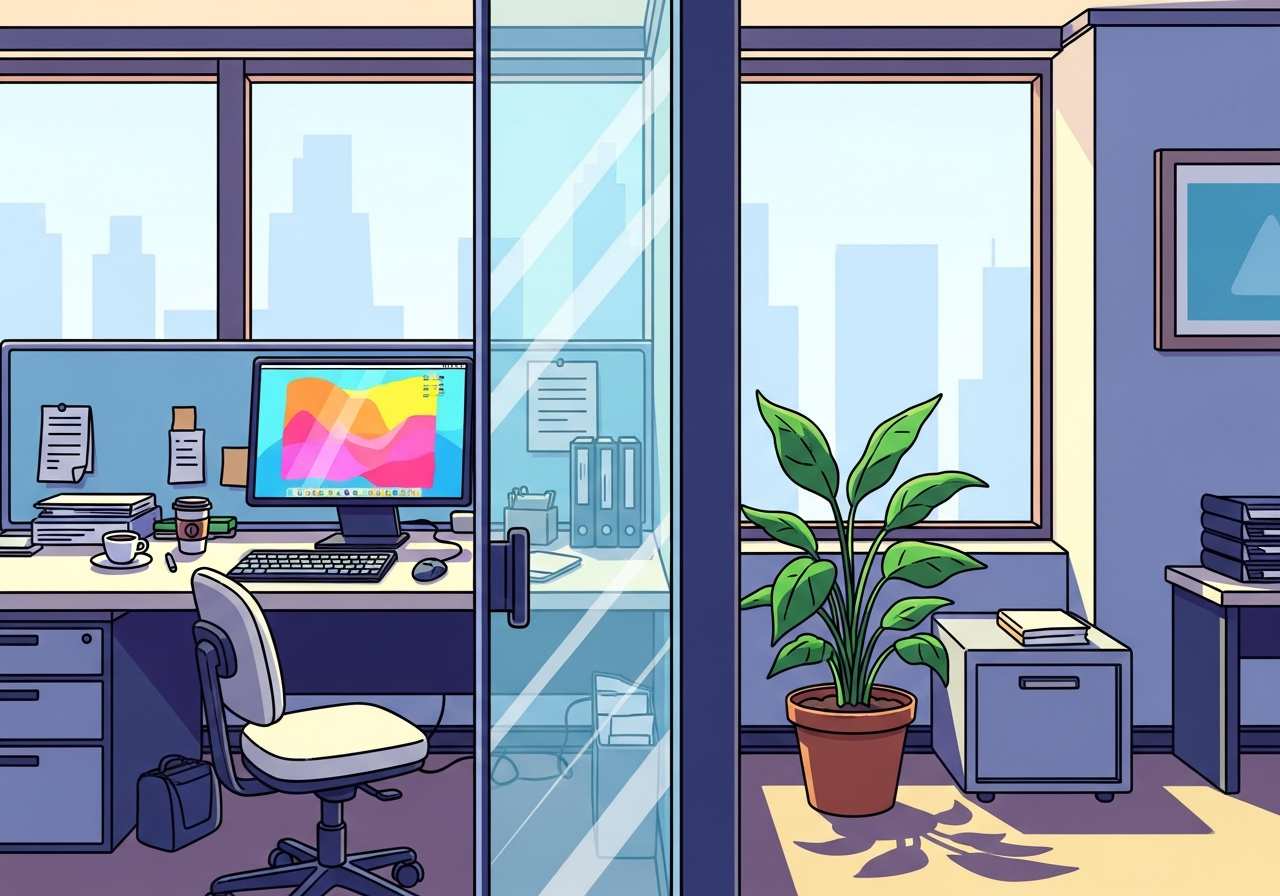 A structure or barrier, such as a wall or screen, that divides a space into separate areas.