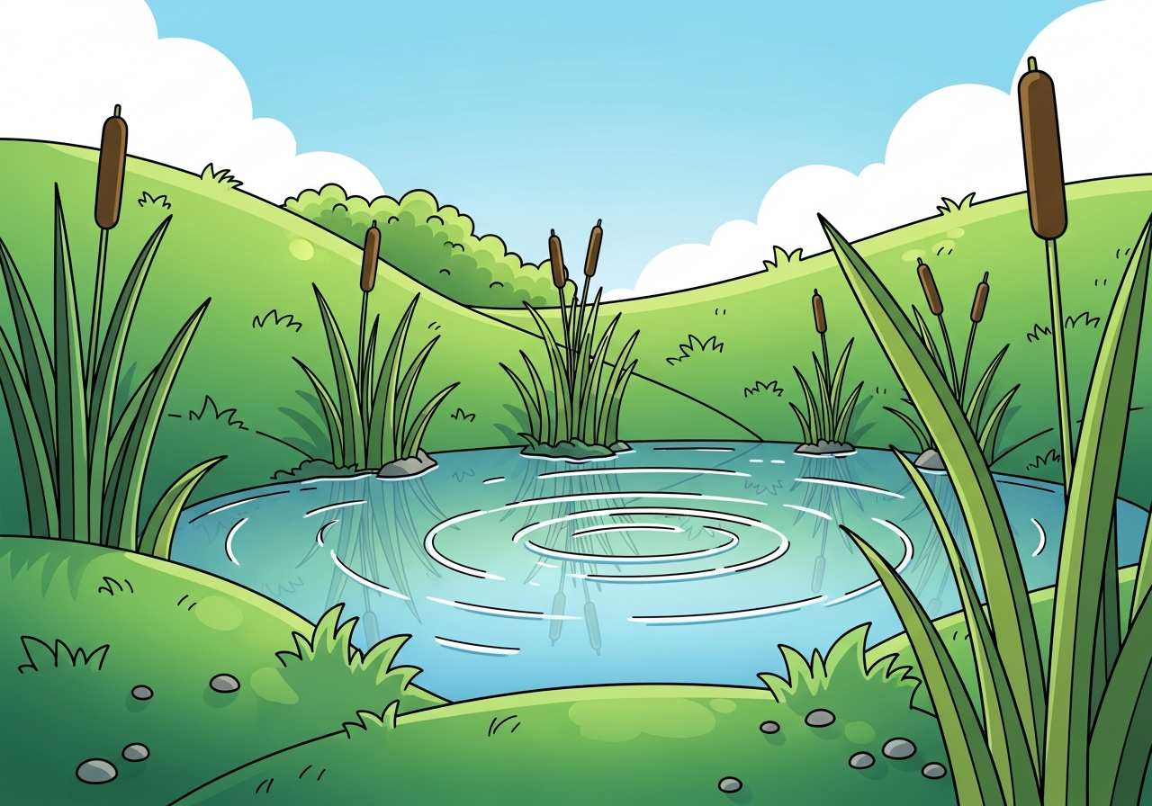 A small body of still water, typically smaller than a lake, often artificially formed.