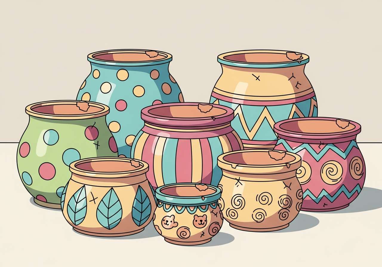 Objects made from clay that are hardened by heat, such as pots, dishes, and vases.