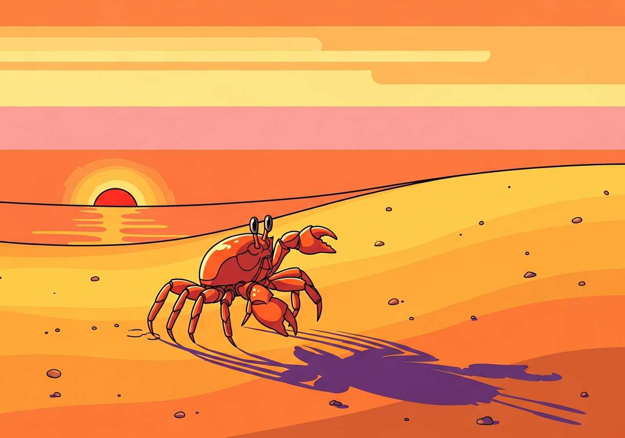 The crab scuttled across the sand and disappeared into the water.