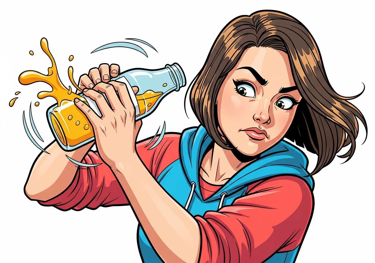 She shook the bottle before opening it.
