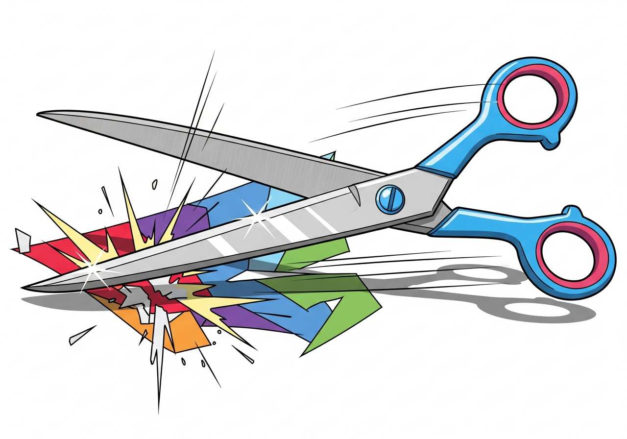 An act of cutting with scissors.