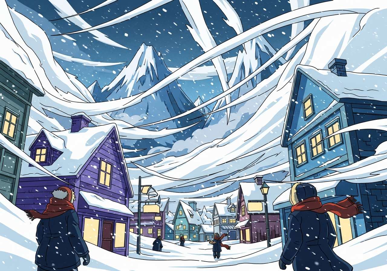 A period of severe winter weather characterized by intense snowfall and reduced visibility.