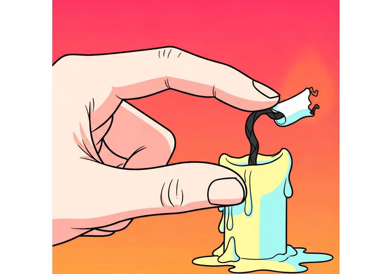 She trimmed the snuff from the candle wick to make it burn brighter.