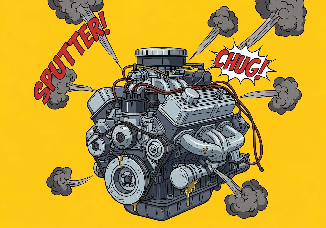 To make a series of soft explosive or spitting sounds, typically when something is malfunctioning or burning unevenly.