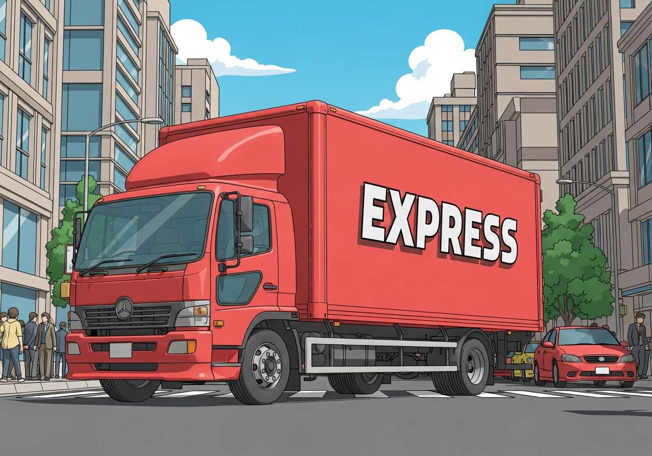 A large motor vehicle designed to transport goods, materials, or equipment, typically having four or more wheels and a separate cab and cargo area