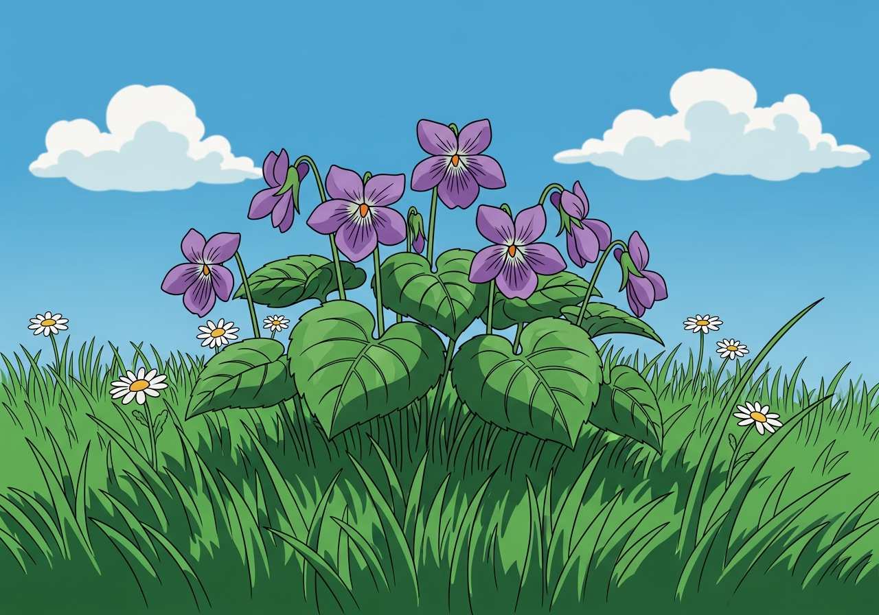 A small plant with purple, blue, or white flowers that typically blooms in spring.