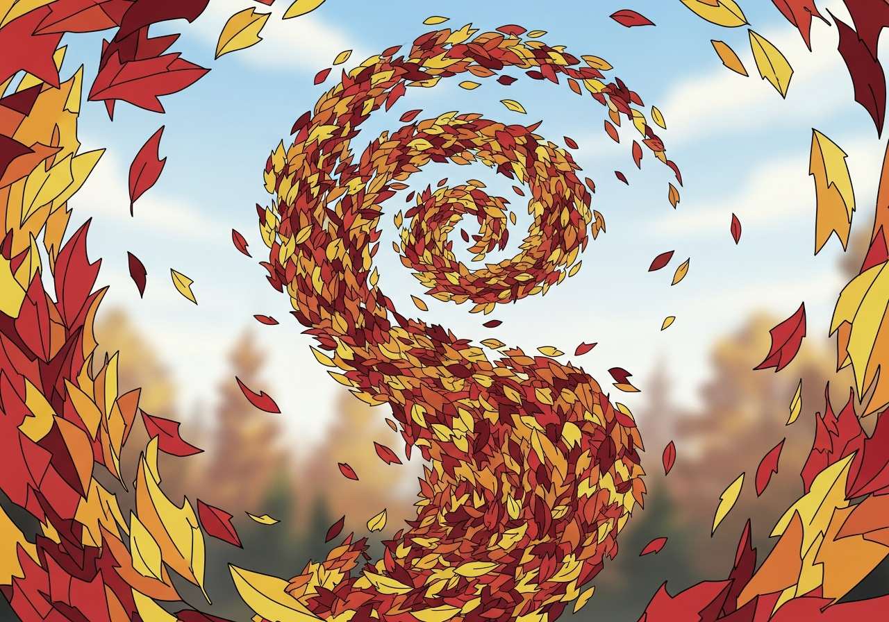 The leaves caught in a whirl of wind.